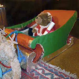 A play sleigh from cardboard boxes.