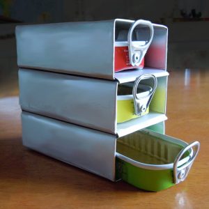 A tiny set of drawers from tins and cartons – no glue.