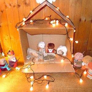 A no-glue nativity made from scraps.