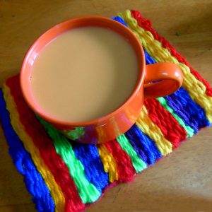 Beads made out of a plastic PET bottle, used for a macrame plant hanger.