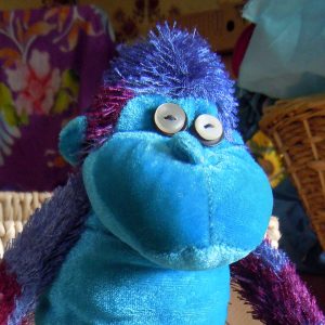 Replacing formed plastic eyes with button eyes.