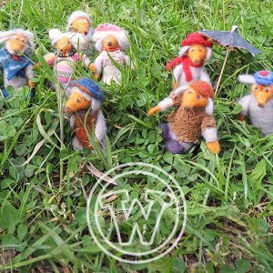 Set of needle felted Wombles made with ‘things that the everyday folks leave behind’.