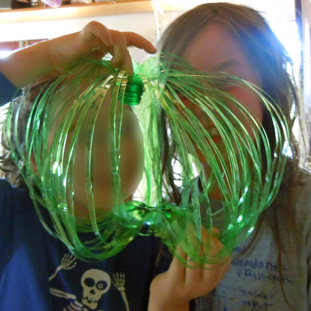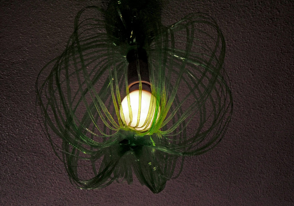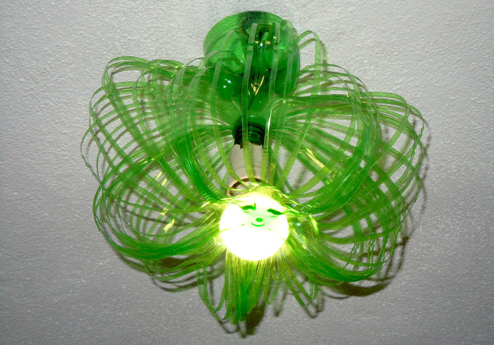 This is a shade made out of just a PET bottle and I used another bottle neck as the ceiling rose to cover the wires sticking out of the ceiling. I’d like to try it with different types of bulbs but for now this is what we have.