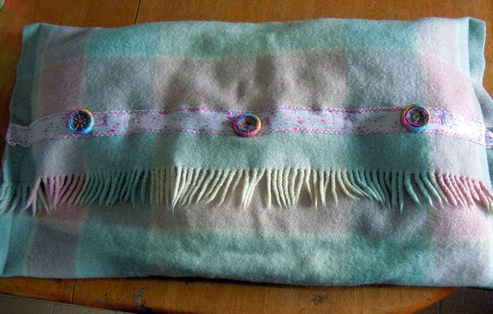 I used these buttons to make a cushion from an old wool blanket, and I’ll use the cushion to store… more old blankets.