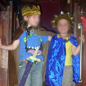 Handmade crowns from old curtain fabric.
