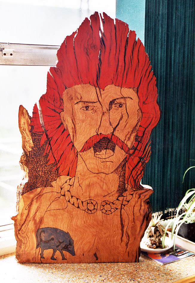 I used Andy’s pyrography tool to draw him in and he was coloured with woodstain.