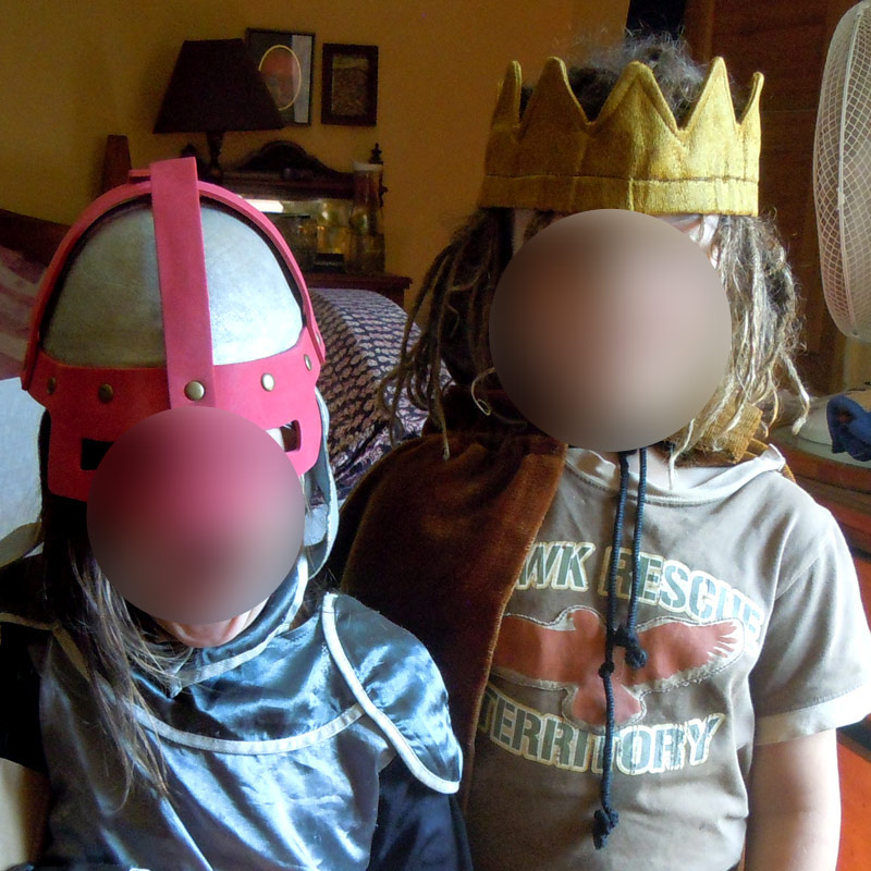 My daughter made a great leather scabbard from an old belt for his wooden sword – also adorned with buttons, and they have scrap fabric cloaks.