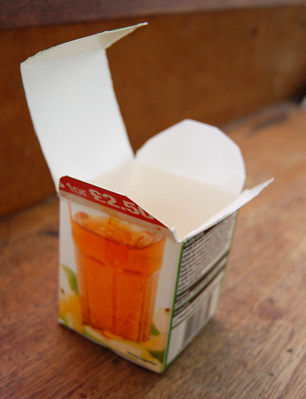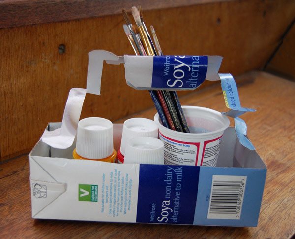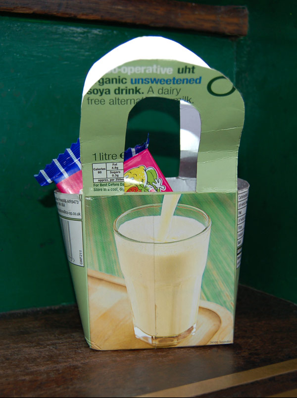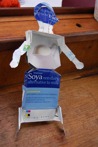 I spent some time chopping up my recycling to see what can be simply made from milk and juice cartons made from this type of laminated cardboard, sometimes with a layer of aluminium.