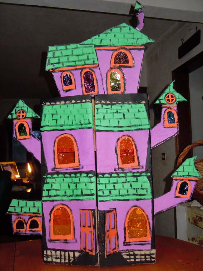 We had a big cardboard box to store out Halloween lanterns and decorations in, so I turned it into a decoration in itself.