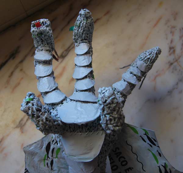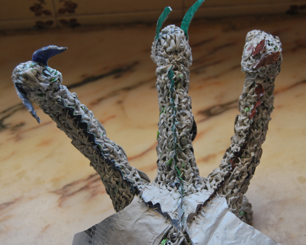 Then I tied plastic bags onto the frame using the strips of plastic till I was satisfied with the general bulk.
