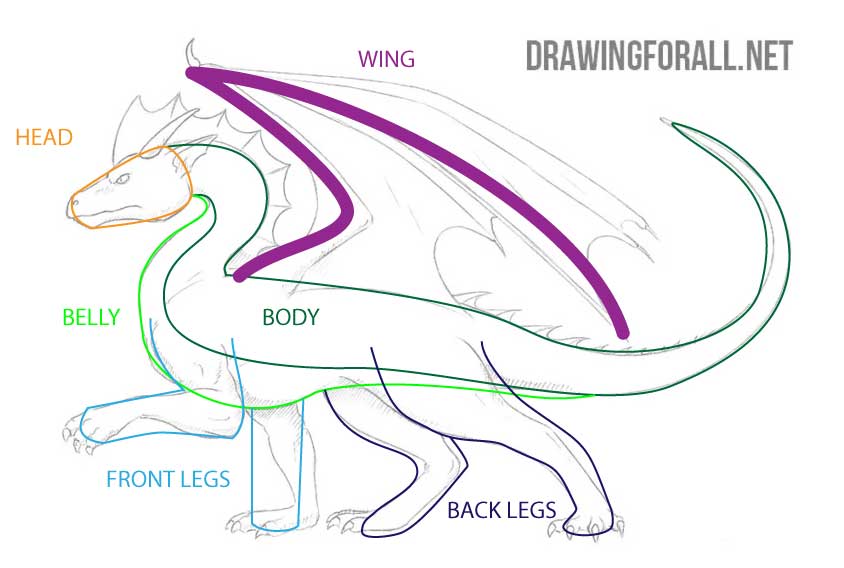 Normally what I do is find a drawing of the kind of dragon I want online and print it at roughly the size I want the dragon to be.