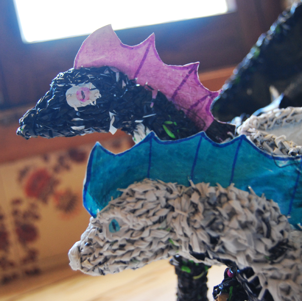 For the smaller dragons, I skipped the wire frame entirely though I did use wire in the wings on the black and white ones.