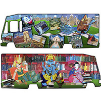 The mobile library service of Blackburn and Darwen Brough Council was re-launched in February 2006. As part of the C21 project, Re-creations was chosen to transform the van into an Indian jeepney, which is a type of transportation found in the Philippines. These are surplus American jeeps that have been overhauled and decorated with colourful paintings, lights and shiny chrome work.