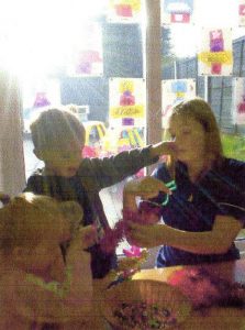 The story was presented to various groups in the community who use the mobile library, including nurseries, playgroups, St. Pauls Church of England primary school and the craft group of the Barlow Institute, using shadow puppetry and music. We also ran workshops to make decorations for the inside of the bus; nursery and school children made dangly jingly colourful peacocks, elephant banners and sparkly rakhis to transform the interior.