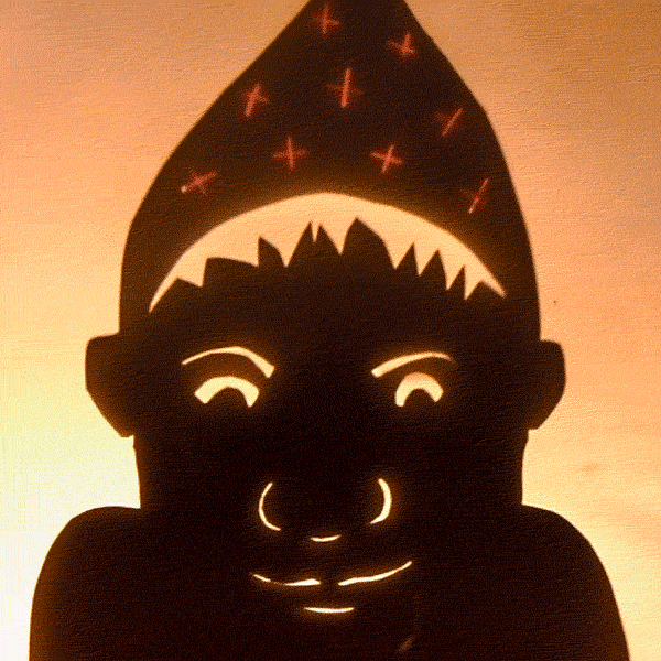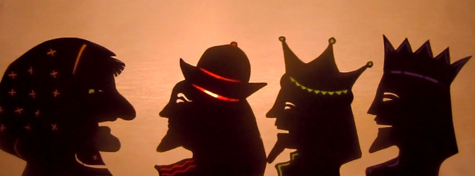 This is a family shadow puppet show based on a folk tale from Italy. We made the puppets out of pizza box cardboard, sticks, rubber bands and sweet wrappers.