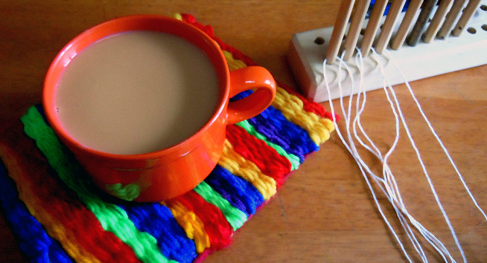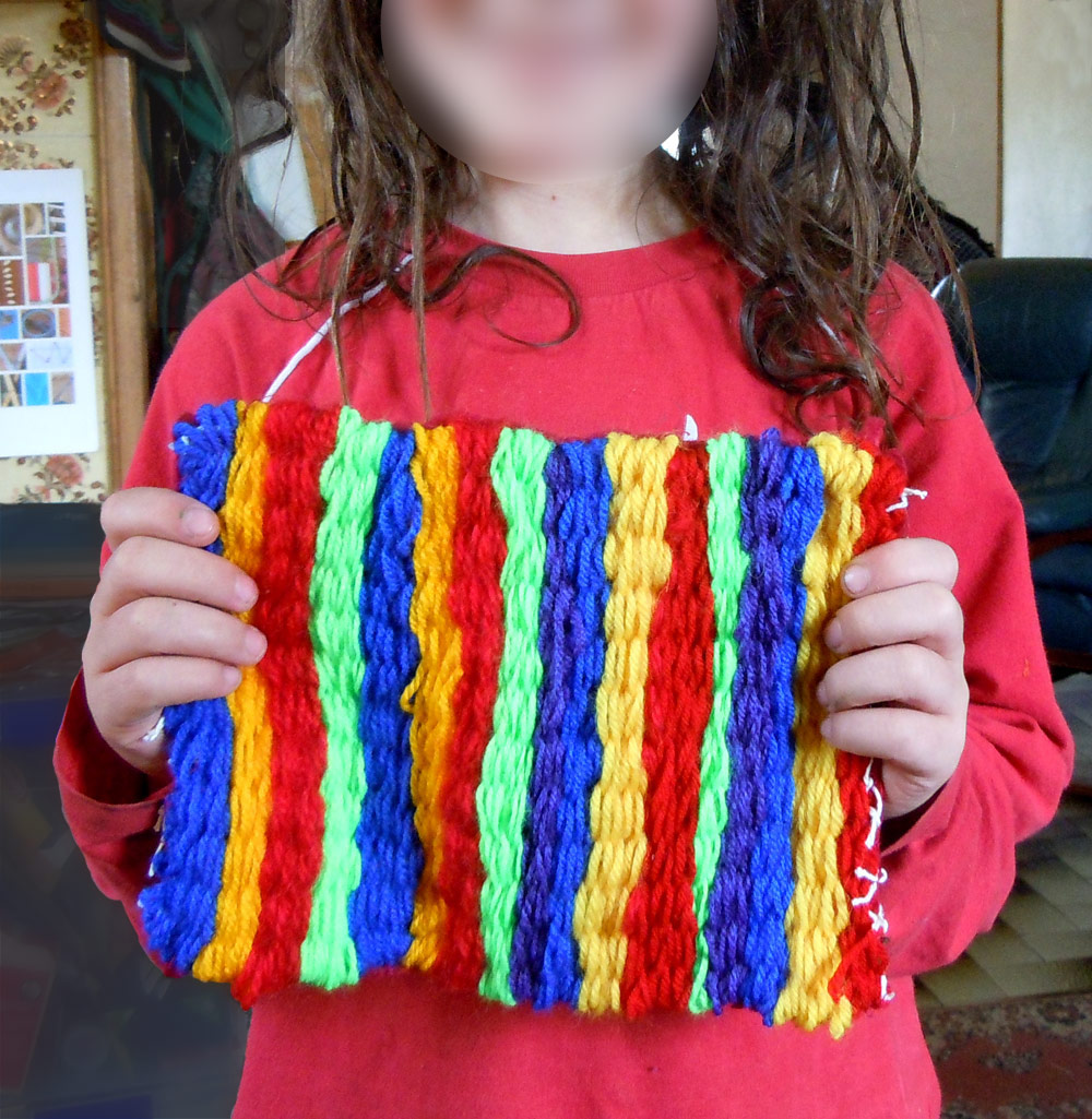 We’ve done a lot of peg loom weaving over the years and my kids are all fairly competent weavers now and use up a lot of scrap wool between them. We just a have a small loom and our mats are mainly used for play, but they have made the odd bag, too.
