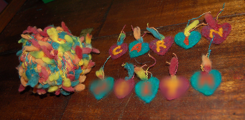 The gifts I included were colour matched needle felted letters to be attached as tassels once the scarf was finished.