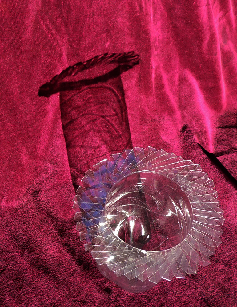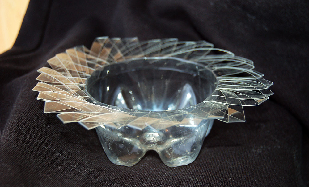 So, not to be deterred, I thought I’d have another go at the woven rim and this time I used 40 strips and photographed it on a better surface and it certainly looks more crystal like as it reflects the colours around it – although it didn’t look quite as dazzling in real life!