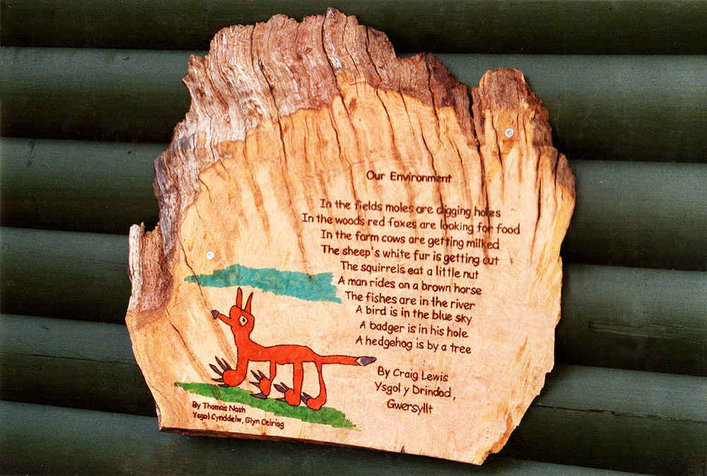 An environmentally themed poetry/picture competition was held at the Environmental Education centre. The winners had their poems and pictures reproduced on wood leftover from the storytelling garden benches,and displayed on the centre’s walls.