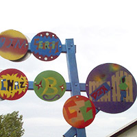 A series of workshops with young people exploring Graffiti art, inspiring stencils and lettering designs. The designs were developed and then sprayed onto discs featured on an archway to the community centre.
