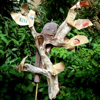 Beards, hats, wands and bats made from reclaimed materials.
