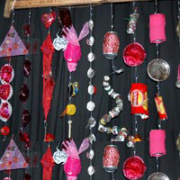 As part of the environmental art project Earth 2020, we ran a 3 day project with Hyndburn young carers group focusing on materials and how they biodegrade. We created a spectacular rainbow curtain out of collected used materials that was displayed in the Town Hall.