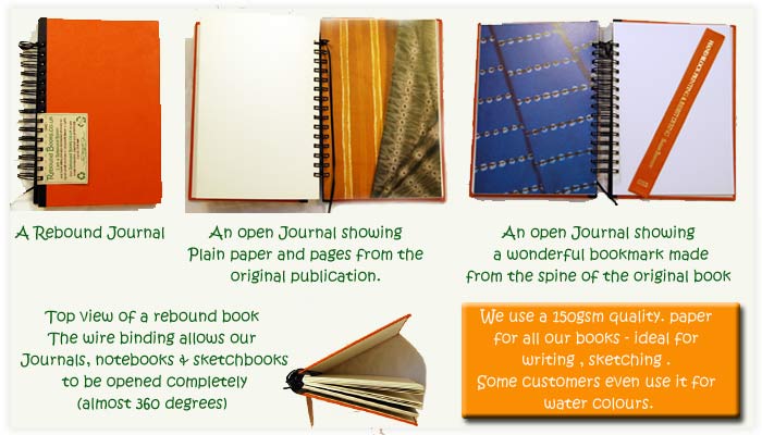 We made our first Rebound Book in the summer of 2008 in part due my experience of looking for a source of unwanted books to use the covers and spines to make collages.  We had acquired a whole transit van load donated by Oxfam and St. John’s Hospice. We picked them up from a local warehouse which was completely overflowing with old books – there were too many for charity shops, and thankfully they hadn’t gone to landfill.