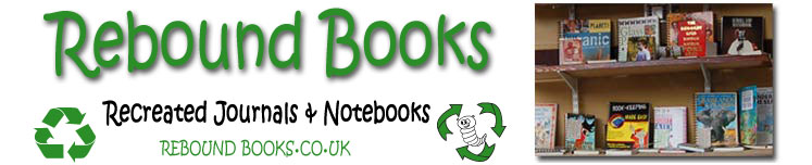 We made our first Rebound Book in the summer of 2008 in part due my experience of looking for a source of unwanted books to use the covers and spines to make collages.  We had acquired a whole transit van load donated by Oxfam and St. John’s Hospice. We picked them up from a local warehouse which was completely overflowing with old books – there were too many for charity shops, and thankfully they hadn’t gone to landfill.