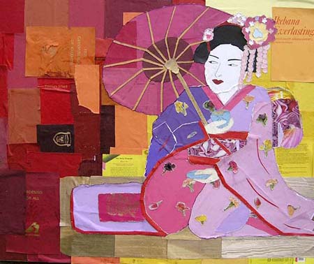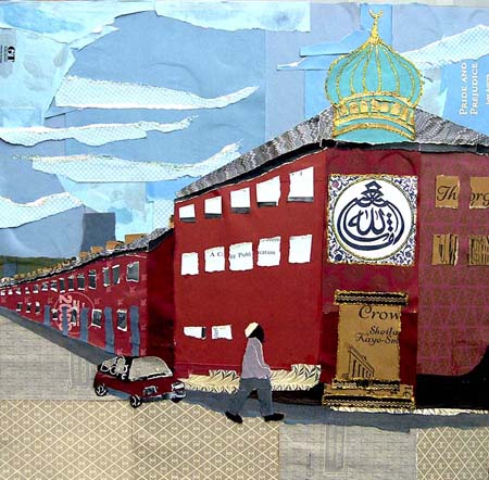 Re creations created a series of collages from old books all donated by Oxfam and St. John’s Hospice that had been rejected by local charity shops and were taking up space in a warehouse rather than being taken to landfill.