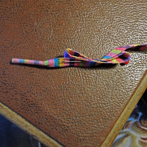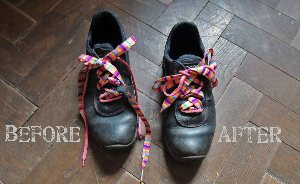 I looked up how to shorten shoelaces and found lots of posts about how to heat shrink your own aglets but people were buying large packets or plastic boxes full of different sizes. I’m not likely to need to shorten more than a few pairs of laces in my lifetime so I went for a simpler option and sewed them shorter. It only took a few minutes.