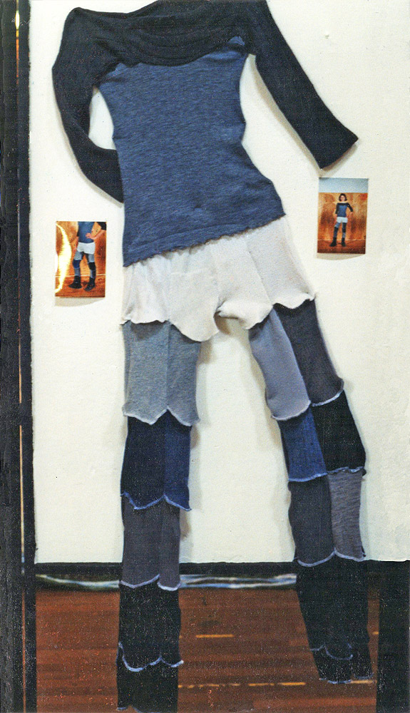 An outfit made from… old students socks. I held a sock amnesty and this was the result of overlocking and patchworking with the useable parts of the socks.