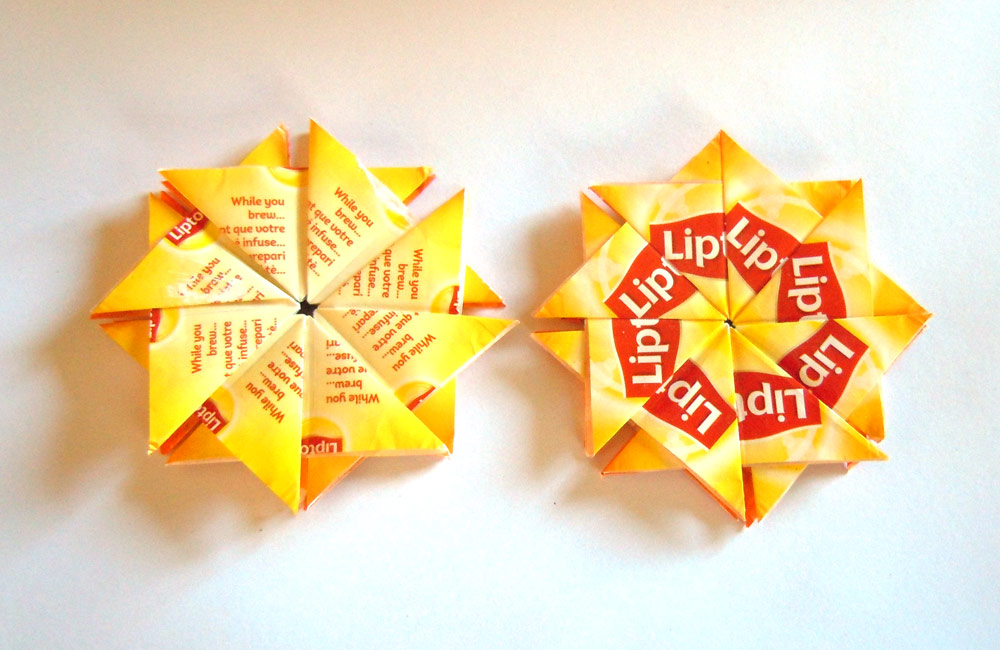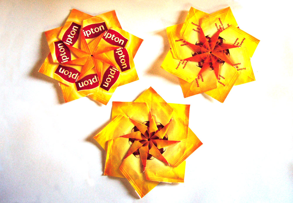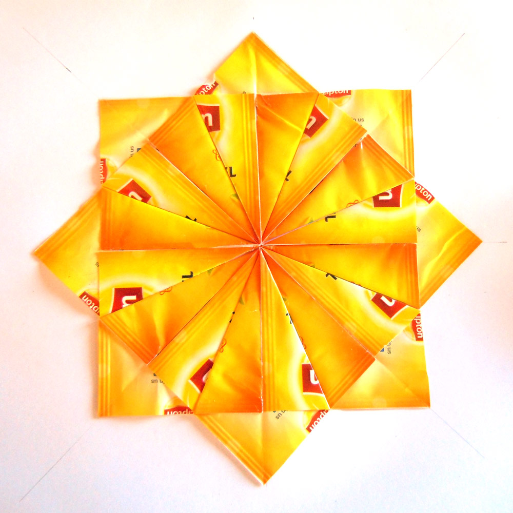 I was intrigued by the name of this craft or method – but no it’s not folded teabags – rather the folding of the little sachets that individually wrapped teabags come in.