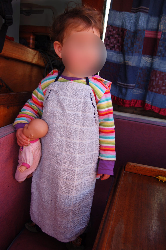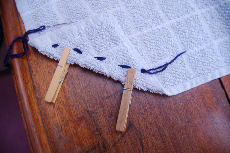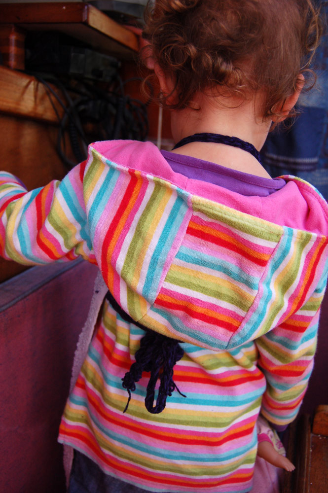 A first sewing project with my two and three year olds. Their older sister has become keen on baking and they want to take part so we made a quick apron together. We chose colours, did some simple sewing and had a go at finger knitting.