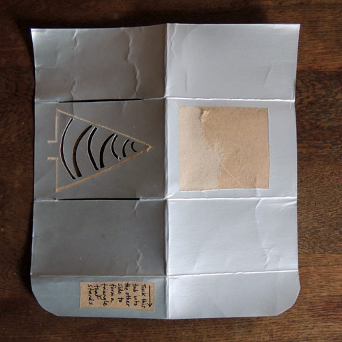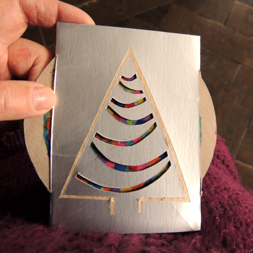 I wanted to avoid using glue or tape so I thought I was onto a winner by making two slots for the disc. My prototype worked, but sadly the cards I made didn’t – they were too tight and wouldn’t turn with one hand. I sent them anyway – with instructions and an apology!
