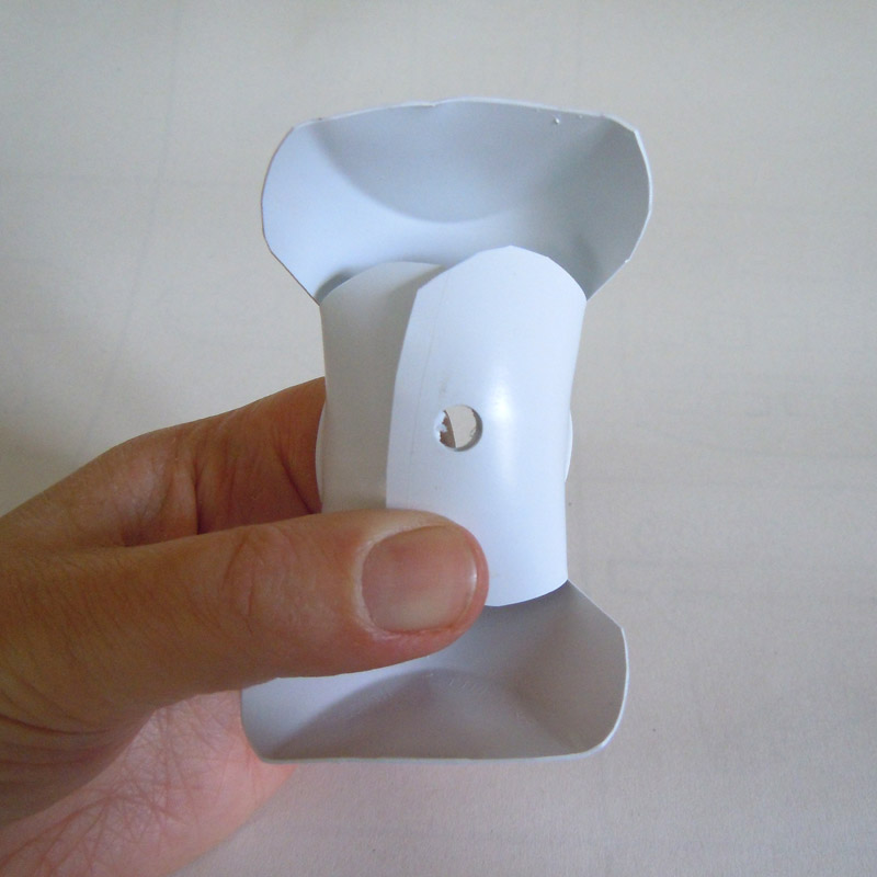 I have used Tetra Evero Aseptic – available with different coloured lids – but the idea can be used for any wide lidded plastic bottle by experimenting with cutting the shapes.