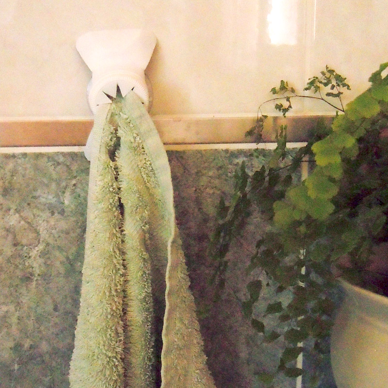 They can attach by screwing into the wall or furniture. For use with tiles they can be attached with a suction cup and are suitable for facecloths. Also suitable if you want to hang cloths on mirror, glass, side of the fridge etc.