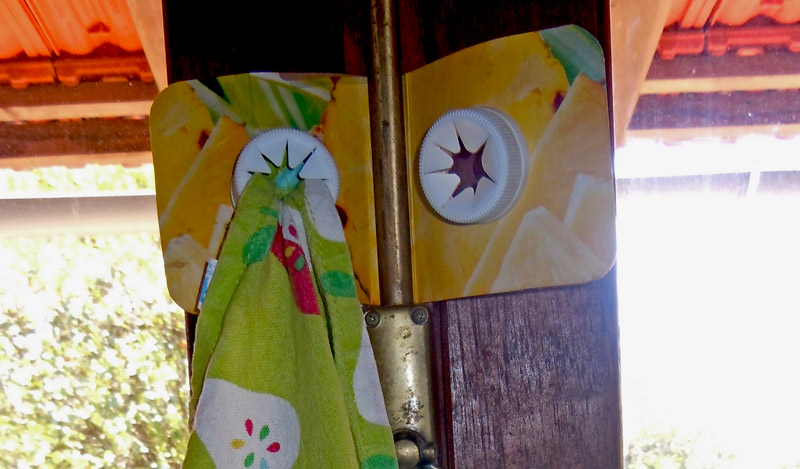 No more retrieving the tea towel off the floor! Here’s a clean and tidy idea to store tea towels and cloths, that’s made entirely from waste from the kitchen
