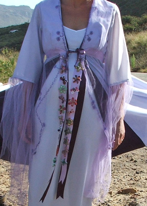The rest of the veil was used to extend the arms and I kept the train because – well – it seemed like fun, though it didn’t go so well with the hiking boots!
