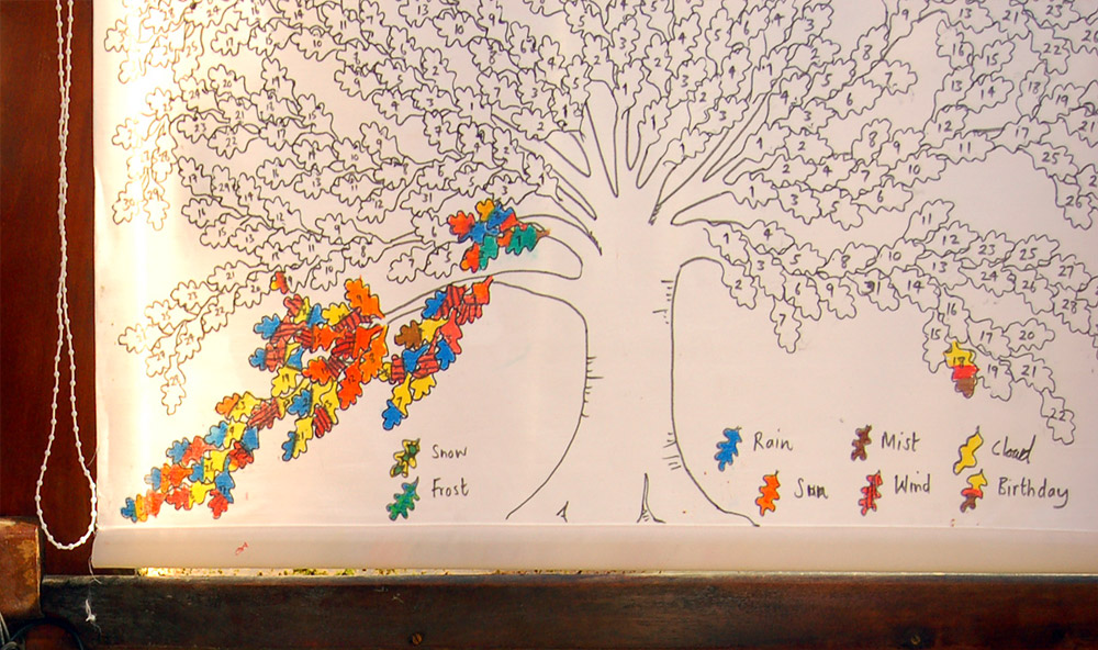 I’ve since done some research into weather calendars. On this one I didn’t put enough thought into the key, so it didn’t work so well. Follow the link to find out how it should be done.