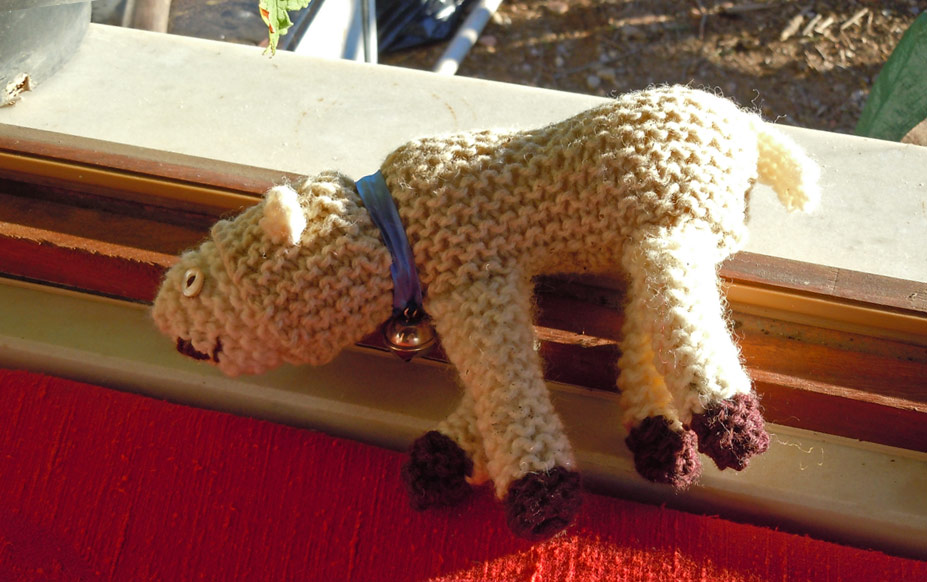 I don’t do much knitting at all and when I do it’s as basic as can be. This is Buttercup the woolly lamb from Shirley Hughe’s Alfie and Annie Rose characters. We read her books an awful lot.